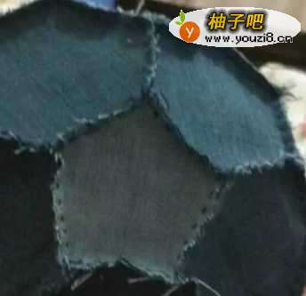 8逢到最后,留下一边先不缝,把足球从留下的一边处翻过来,在里面放上填充物后,把最后一边缝合上,足球就做好了。