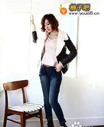 5翻毛外套这季很流行,最简单的还是搭配牛仔裤,让帅气味道散发。