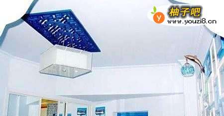 7厅中蓝白搭配的吊灯与混合风格滴雕花的吊板。