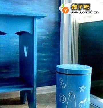 4看看这个喷漆垃圾桶,先把外壳全刷一遍,干了之后再用丙烯颜料勾画,DIY味道十足。
