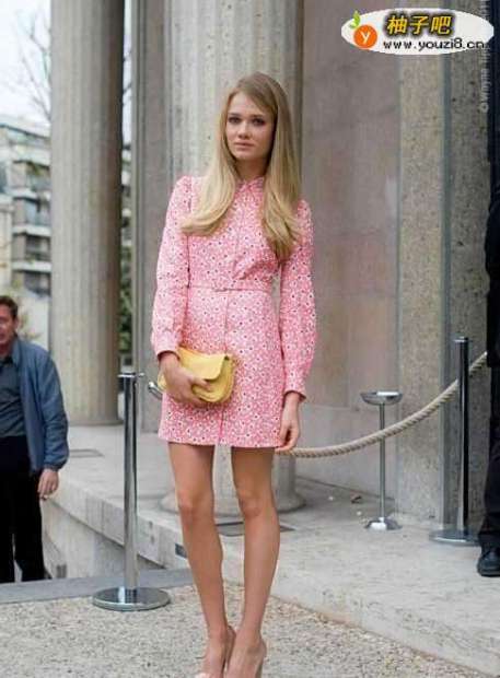 33、这款简洁大方的粉色碎花小礼裙,乍一看还以为是凯特王妃呢,裸色鞋子拉长了腿部线条,小巧的鹅黄色的手拿包是很棒的点缀。