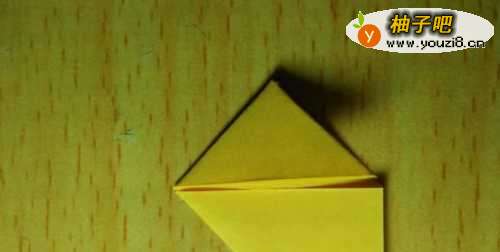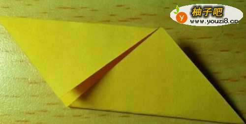 5接下来把小三角形往大三角形的方向折。