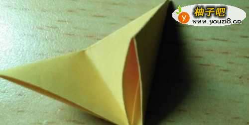 7小三角形按中位线对折,让小三角形能够立起来。