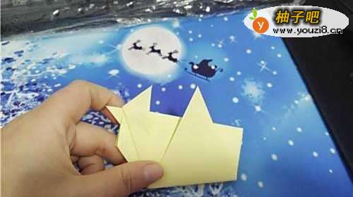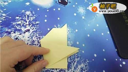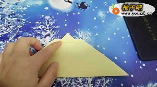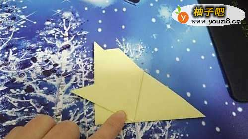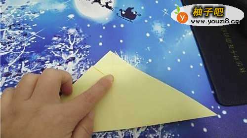 2先把上面的角向下折四分之一,然后把后面的角也向下折。