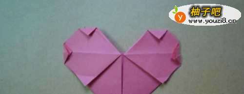 7然后,把红色折纸翻转过来,一个漂亮爱心就折好了