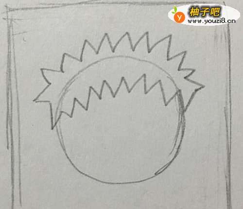 3在圆圈上面用锐角围成一个圈,为头发。
