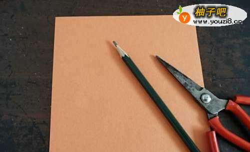 首先准备好一张彩纸,一把剪刀,一支笔。