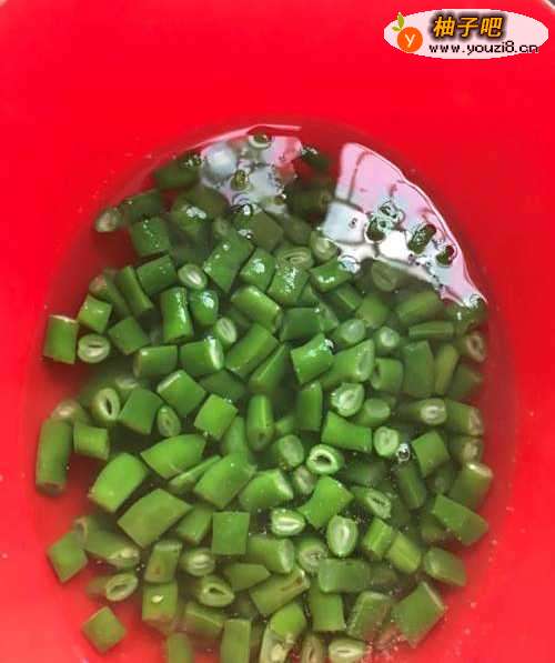 四季豆处理干净,然后洗干净。切成丁状,小块,待用。