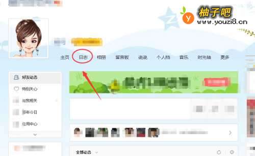 3在qq空间的页面,找到“日志”点进去。