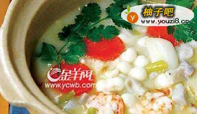 4百合鸡汤方法:百合15克、淮山药15克、莲子15克、薏仁30克、芡实15克、党参20克、白蒺藜10克、乌骨鸡1只(约1000克),先将乌骨鸡去毛及内脏切块放入炒锅内加水适量炖至半熟时,再加入上述药物同炖至鸡肉烂熟,食鸡肉、饮汤。