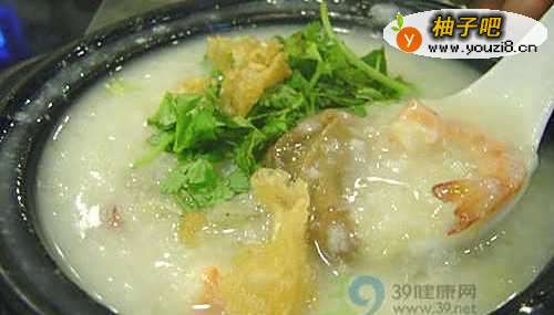 2、锅内加12杯水与上述药材、梗米熬煮成粥,待凉后加入蜂蜜调味后即可食用。