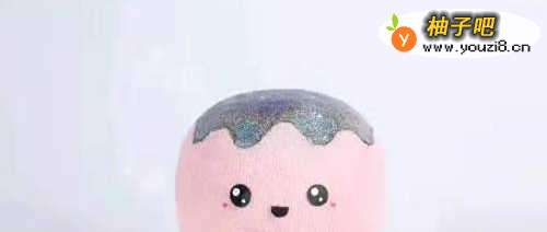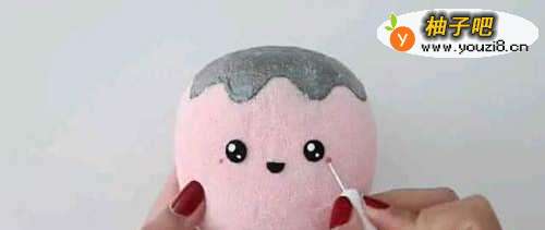 6如下图做眼睛和嘴巴。再用白色水笔涂上眼白,用粉色水笔涂上腮红。简单可爱的娃娃就做好了。