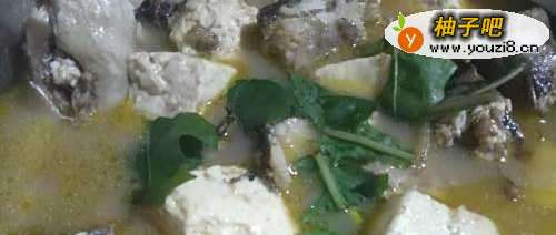 3放入姜,花椒翻炒几下,再倒入生抽炒匀后,添水。放入豆腐块,中火炖至鱼熟。