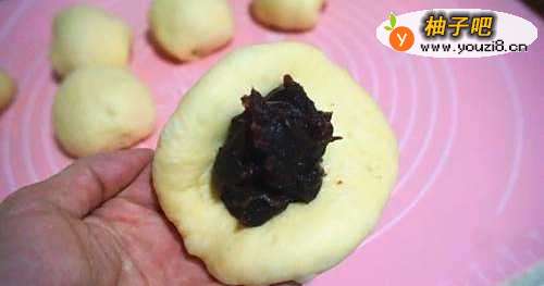 44.后擀开,放入豆沙馅