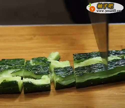 2把拍扁的黄瓜切成小块
