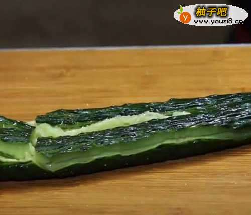 用刀面把黄瓜拍扁