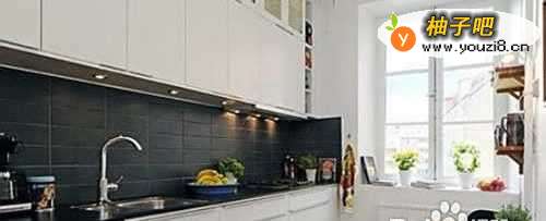 5厨房烹饪区的色调以强烈的黑白对比运用构成,设计线条也是简练分明,加上一些红色的块毯活跃空间氛围,经调和后的厨房风格沉稳而不乏活泼感。一字型的整体厨柜不仅充分调动了每一寸墙面空间,而且从视觉上也让厨房看起来更加完整。