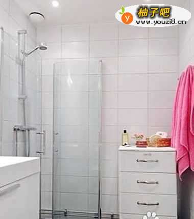 2卫浴空间采用纯净白色,浴室家具线条简约,营造出一个清爽的卫浴间环境。虽然整个空间的面积较小,可用于收纳的空间自然不大,不过利用小巧的抽屉柜后,令卫浴间显得不那么狭窄了。