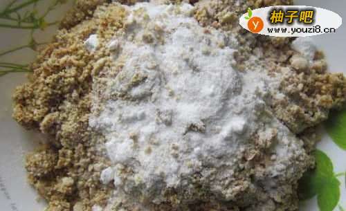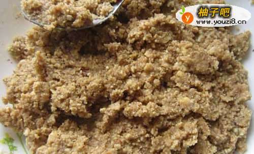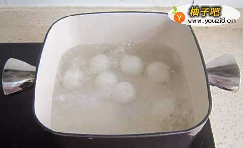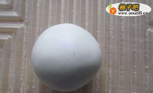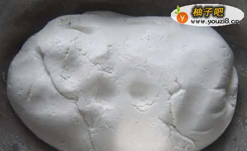 8将适量的温水倒进糯米粉里,揉成光滑的面团