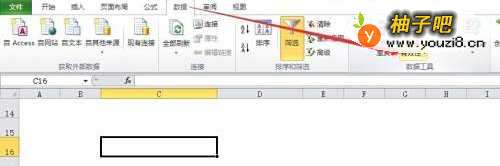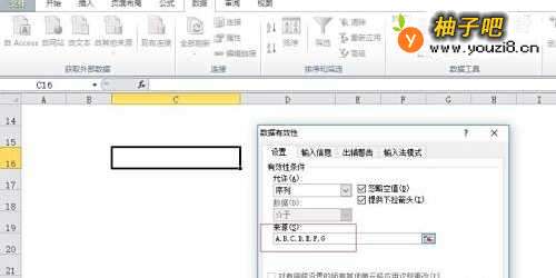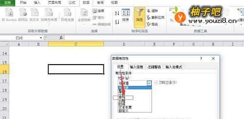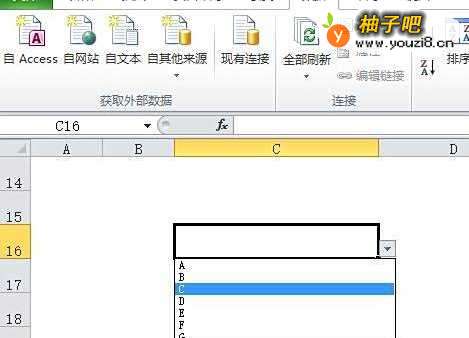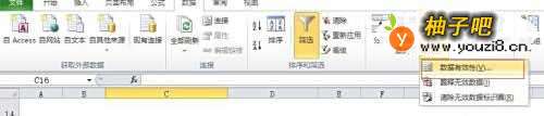 选择单元格C16,点击“数据”菜单,找到“数据有效性”按钮。见图: