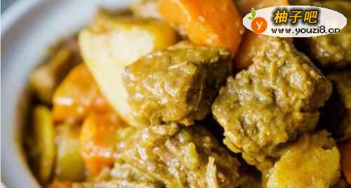 1010、装盘享用:开盖后如果汁水还剩比较多,可用大火收下汁。家里有椰浆的话,最后再倒入椰浆,可以让咖喱味道更浓郁。出锅装盘,咖喱土豆炖牛腩就完成了。