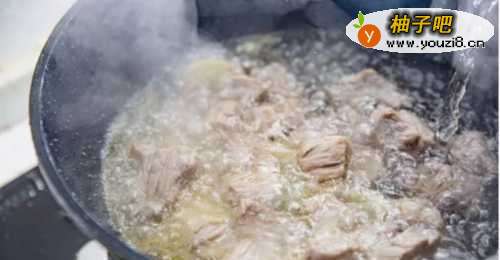 33、炒牛腩:牛腩先反复冲洗掉血水,然后和冷水下锅。放姜片,不盖盖子,等水开后再煮三四分钟。