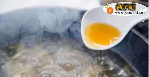 77、煮开后撇去表面的浮沫,然后再倒入2汤勺料酒。