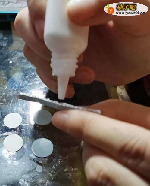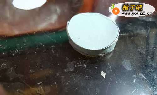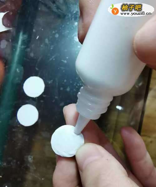 4第四步:在剪好的一张圆形卡片的四周涂上白胶。