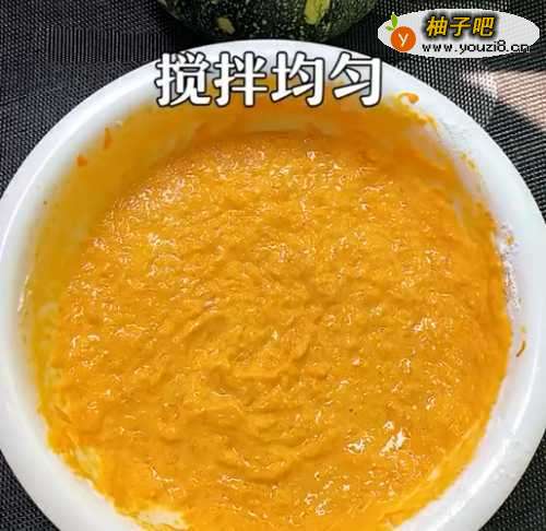 3●第三步:将南瓜糊、鲜奶以及糯米粉搅拌均匀。
