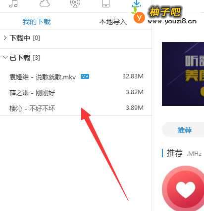 4看到已下载的歌单,选中要下载到内存卡的歌曲,然后右击。