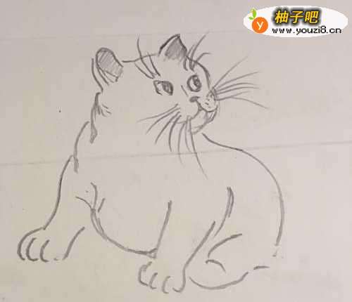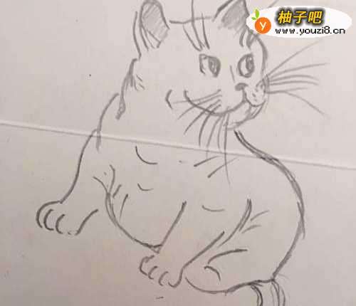 6第六步 画上猫的后腿尾巴和尾巴就行了。