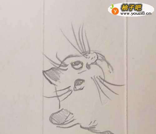 3第三步 画上猫的脸 眼睛 鼻子 嘴巴 胡子等
