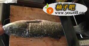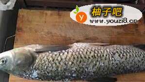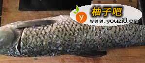 2取腥线(也可不做,煮的时间久了,鱼腥味也能去除)。在鱼头下部和鱼尾上部各划一刀。