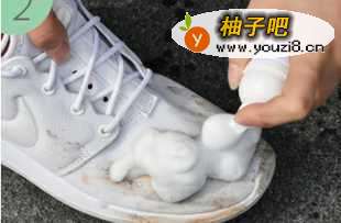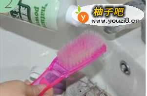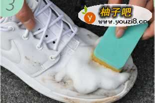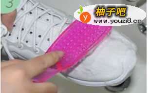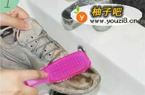 2将洗涤剂倒于刷子上,并打湿鞋面。