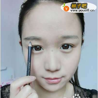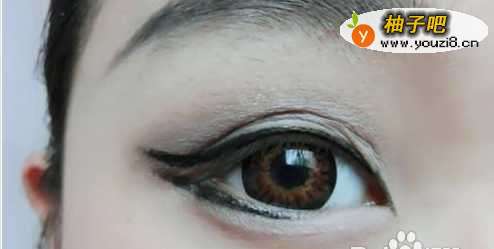 17将眼头拉出一些,注意一定要精细,眼尾要上扬,下眼线不要与上眼线合在一起就可以了