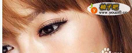 5在内眼角的位置,同样要描画出淡淡的黑色眼线,起到一个开打眼角的作用。