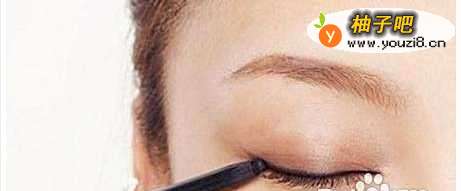 3为了能够让眼妆更加的立体和清晰,我们用手把眼皮提起来,用眼线笔在睫毛根部的粘膜部分进行内眼线的描画。