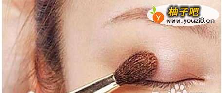 首先用眼影刷,蘸取适量的浅棕色眼影,把它涂抹在上眼睑位置,起到一个打底和提亮眼部的作用。