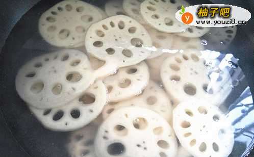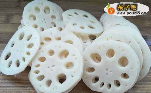 将藕去掉藕节和外皮,洗净之后切成圆薄片
