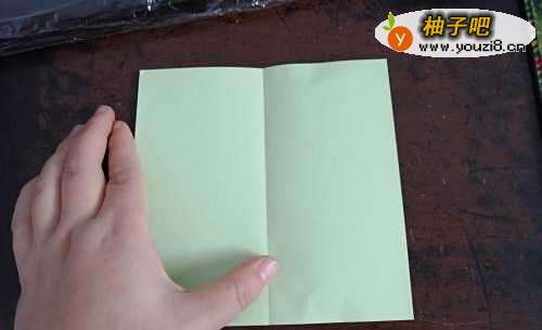 先把彩纸的左右边互相对折,再把上侧的边向下折。