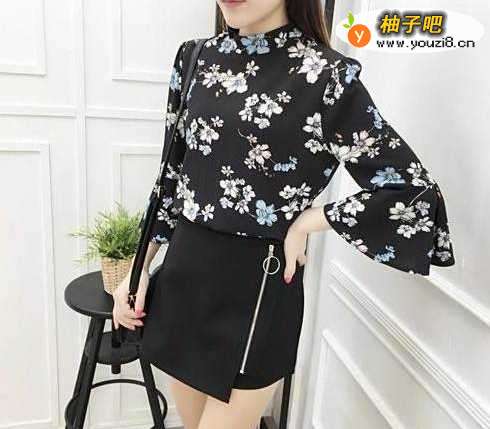 搭配五:黑色鱼尾短裙鱼尾裙的款式很显优雅感,这款黑色鱼尾短裙长度很显腿长,适合小个子女生,搭配黑色碎花上衣很显气质。