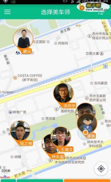 2从右至左滑动可以看到周围地图,选择一个你喜欢的美车师: