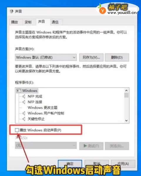 3勾选播放Windows启动声音;如下图所示: