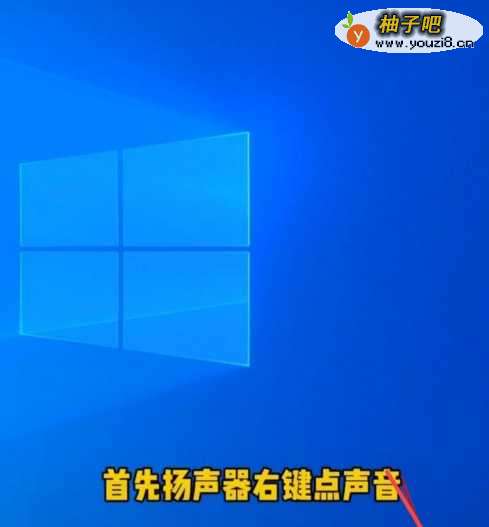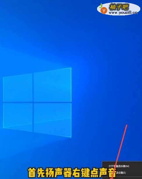 右键桌面右下角的扬声器;如下图所示: