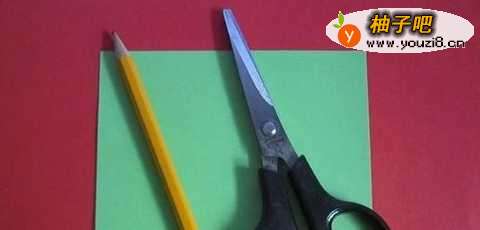 首先准备好折圣诞树的材料,一张正方形的纸,一把剪刀,一支笔。