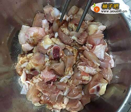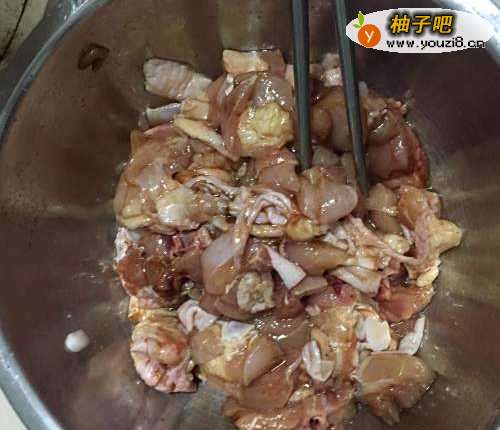 2将清洗干净的鸡块加入适量的五香粉、盐和酱油;
