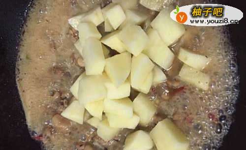 8随后加入热水待水完全烧开后,加入土豆小火炖10分钟;