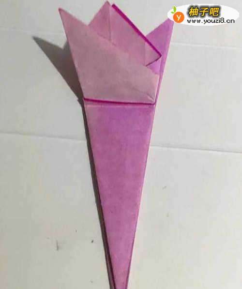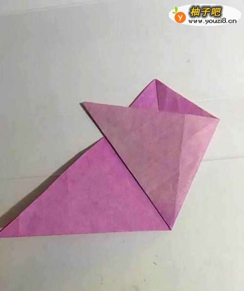 3第三步 折叠完之后 再拿起左下角向右上三分之二的地方折叠 然后整理一下 均匀地分成三等分