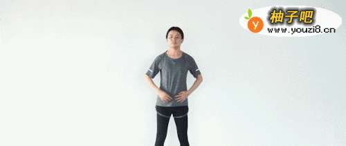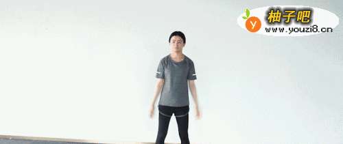 ③甩到第五下,手往后甩的同时双膝微微下蹲,轻松的上下弹动两次。