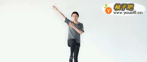 双臂轮流向身体一侧上抬,向右抬时,右腿也一起配合上提,反之亦然。